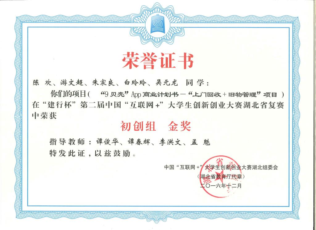 “建行杯”第二届中国“互联网+”大学生创新创业大赛湖北省复赛-金奖---“9贝壳”App商业计划书-“上门...