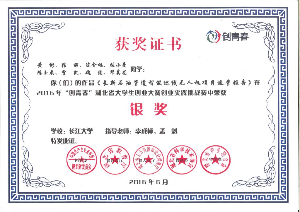 2016年“创青春”湖北省大学生创业大赛创业实践挑战赛-银奖---长新石油管道智能巡线无人机项目运营报告