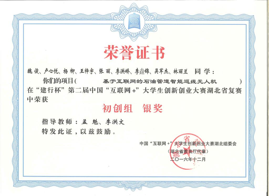 “建行杯”第二届中国“互联网+”大学生创新创业大赛湖北省复赛-银奖---基于互联网的石油管道智能巡线无...