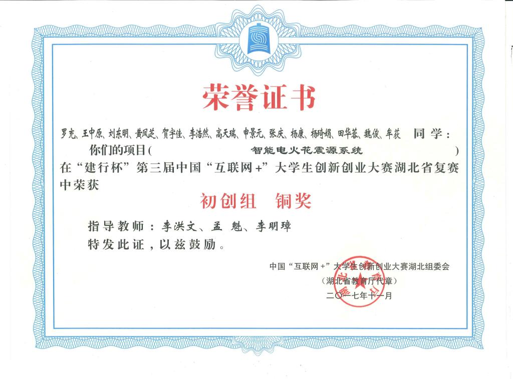 “建行杯”第三届中国“互联网+”大学生创新创业大赛湖北省复赛-铜奖---智能电火花震源系统