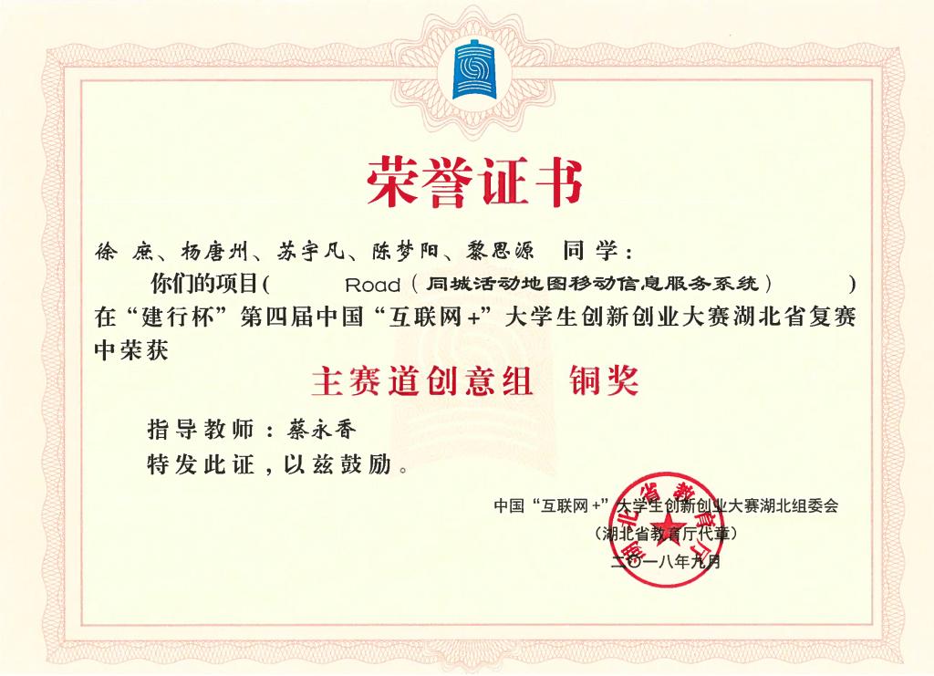 “建行杯”第四届中国国际“互联网+”大学生创新创业大赛湖北省复赛-铜奖---Road(同城活动地图移动信息...