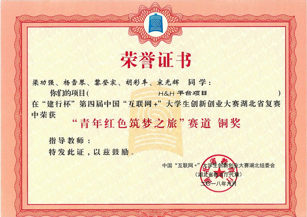 “建行杯”第四届中国国际“互联网+”大学生创新创业大赛湖北省复赛-铜奖---H&H平台项目