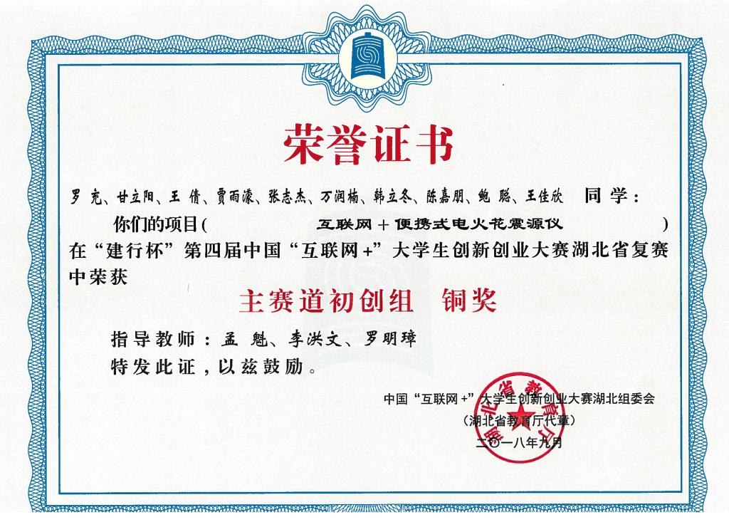 “建行杯”第四届中国国际“互联网+”大学生创新创业大赛湖北省复赛-铜奖---互联网+便携式电火花震源仪
