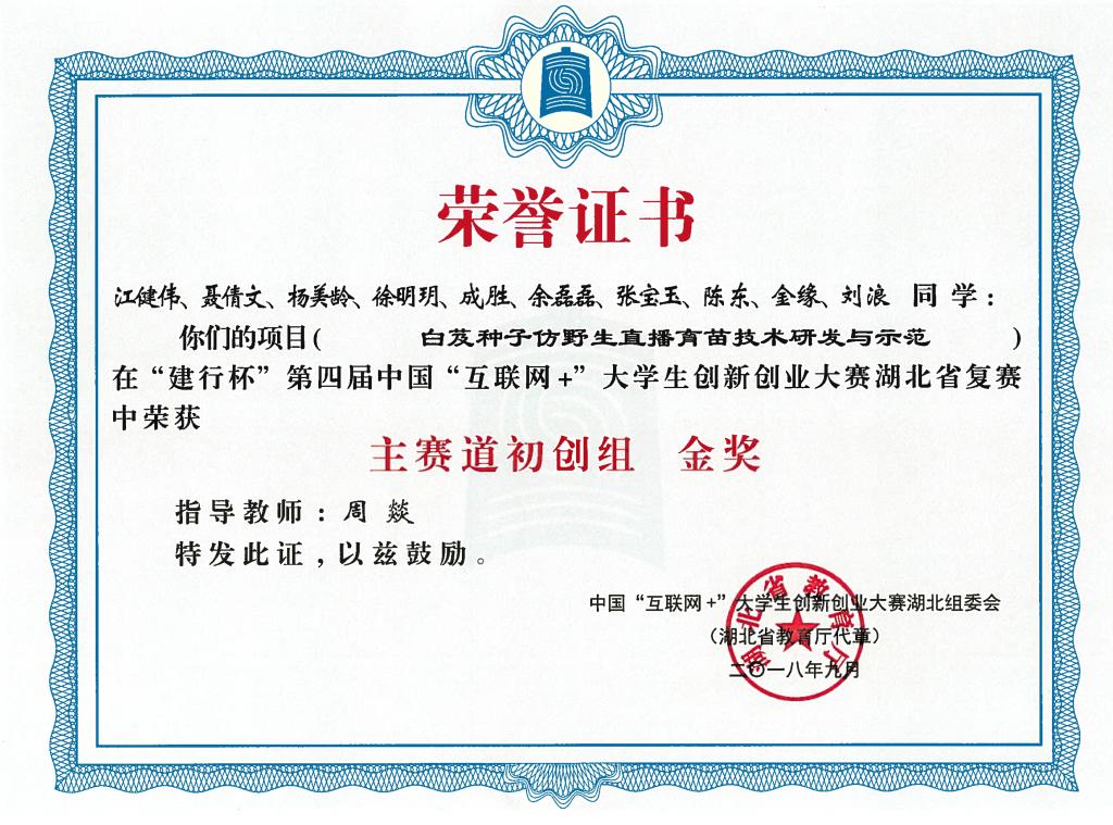 “建行杯”第四届中国国际“互联网+”大学生创新创业大赛湖北省复赛-金奖---白芨种子仿野生直播育苗技术...