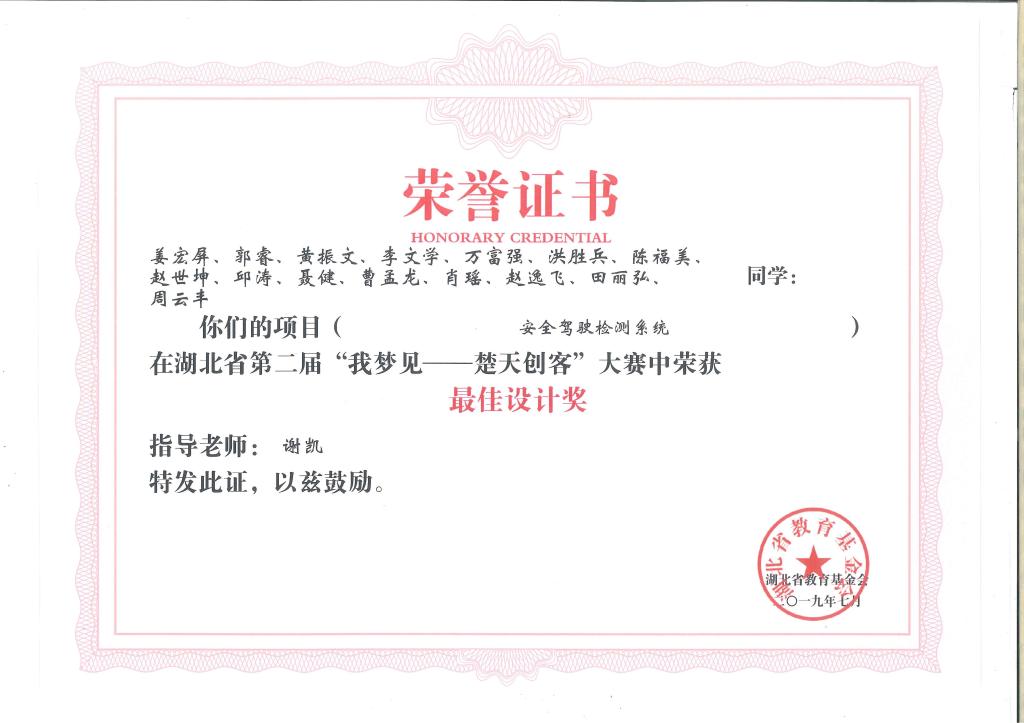 湖北省第二届“我梦见——楚天创客”大赛-最佳设计奖---安全驾驶检测系统