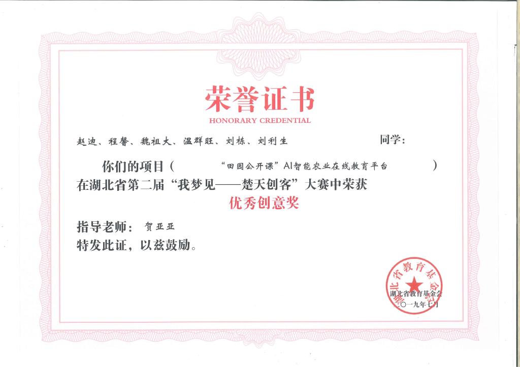 湖北省第二届“我梦见——楚天创客”大赛-优秀创意奖---“田园公开课”AI智能农业在线教育平台