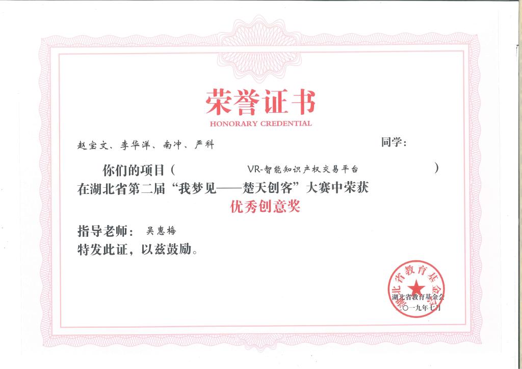 湖北省第二届“我梦见——楚天创客”大赛-优秀创意奖---VR-智能知识产权交易平台