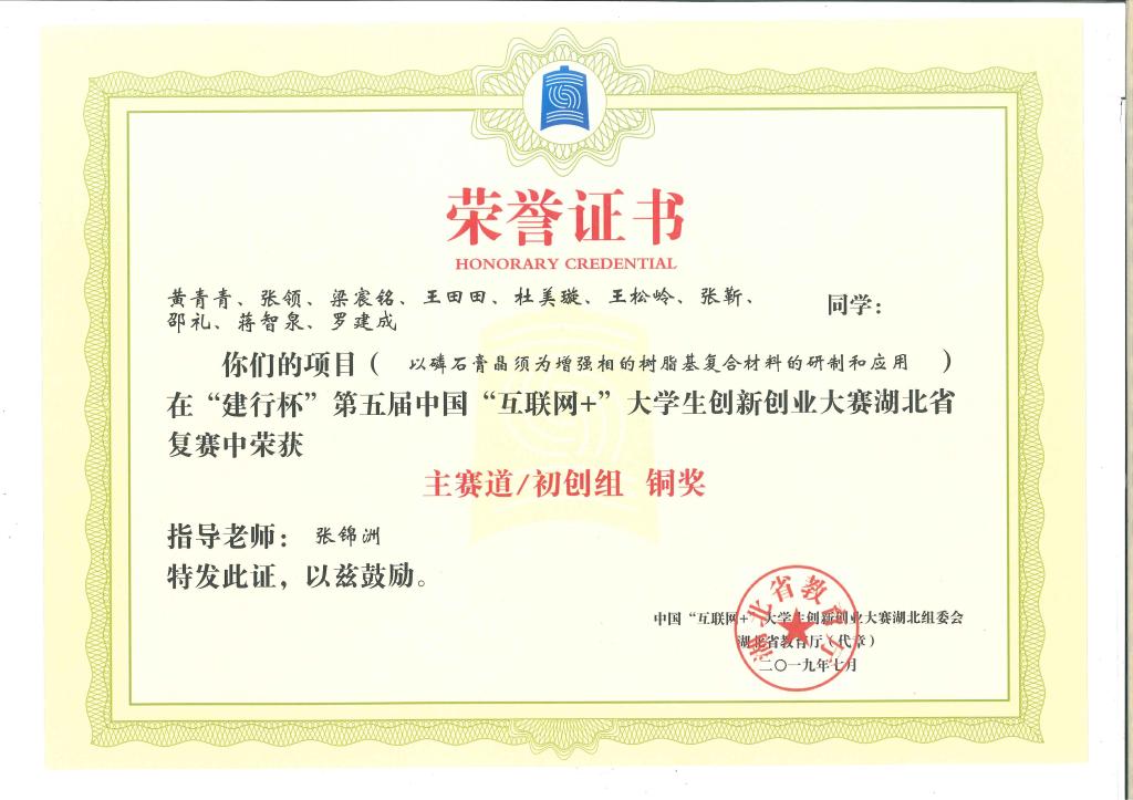 “建行杯”第五届中国国际“互联网+”大学生创新创业大赛湖北省复赛-铜奖---以磷石膏晶须为增强相的树脂...