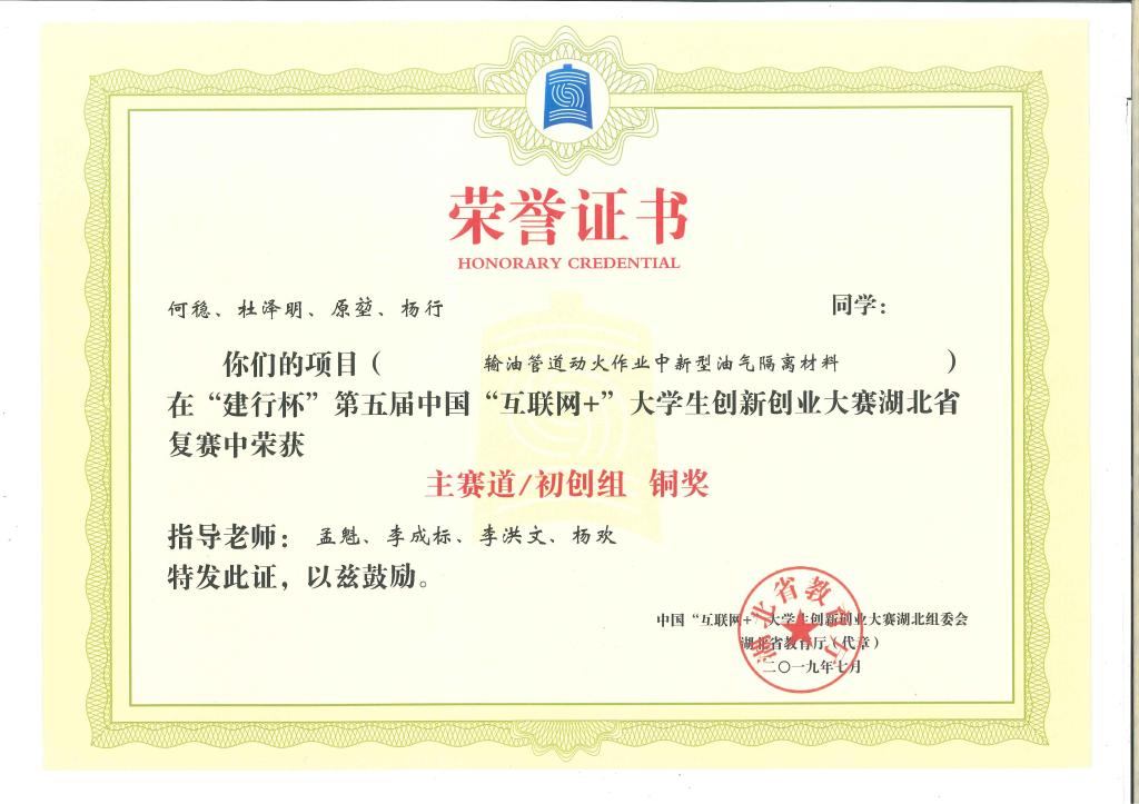 “建行杯”第五届中国国际“互联网+”大学生创新创业大赛湖北省复赛-铜奖---输油管道动火作业中新型油气...