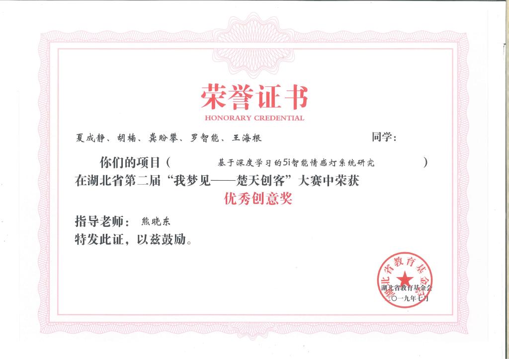 湖北省第二届“我梦见——楚天创客”大赛-优秀创意奖---基于深度学习的5i智能情感灯系统研究