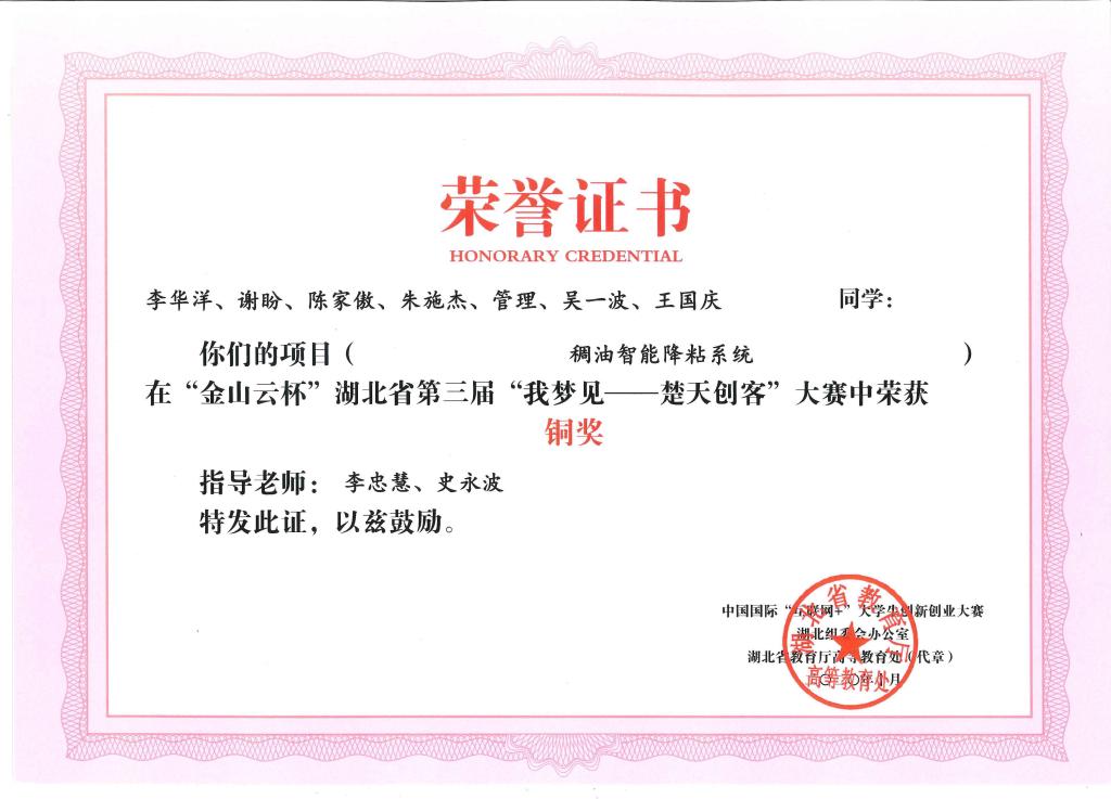 “金山云杯”第三届湖北省“我梦见—楚天创客”大赛-铜奖---稠油智能降粘系统