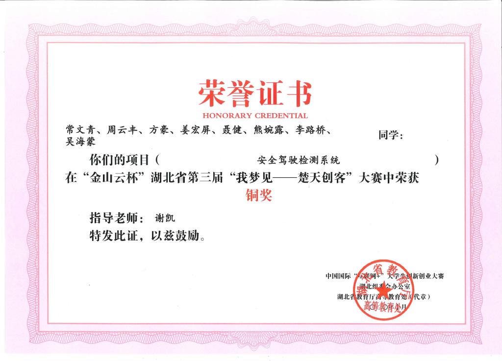 “金山云杯”第三届湖北省“我梦见—楚天创客”大赛-铜奖---安全驾驶检测系统
