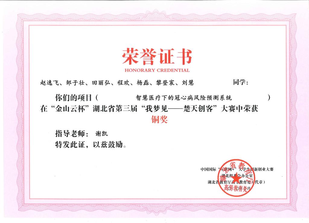 “金山云杯”第三届湖北省“我梦见—楚天创客”大赛-铜奖---智慧医疗下的冠心病风险预测系统