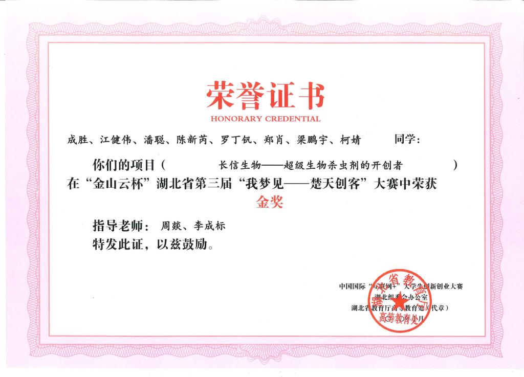 “金山云杯”第三届湖北省“我梦见—楚天创客”大赛-金奖--长信生物——超级生物杀虫剂的开创者