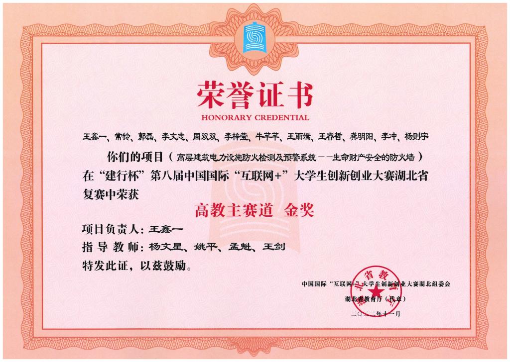 “建行杯”第八届中国国际“互联网+”大学生创新创业大赛湖北省复赛-金奖---高层建筑电力设施防火检测及...