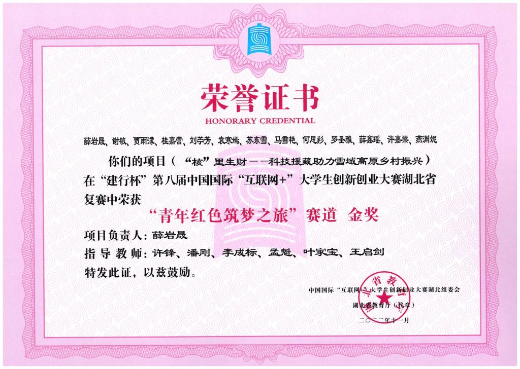 “建行杯”第八届中国国际“互联网+”大学生创新创业大赛湖北省复赛-金奖---“核”里生财——科技援藏助...