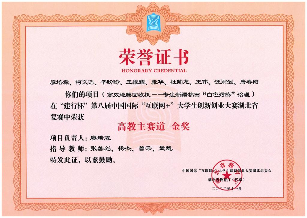 “建行杯”第八届中国国际“互联网+”大学生创新创业大赛湖北省复赛-金奖---高效地膜回收机——专注新疆...