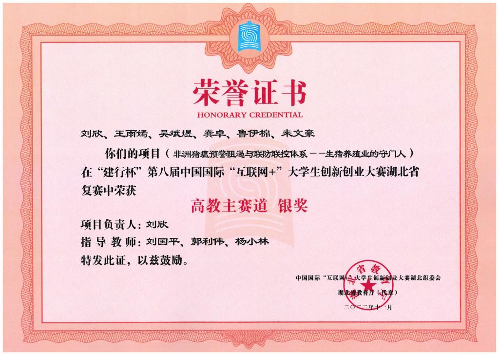“建行杯”第八届中国国际“互联网+”大学生创新创业大赛湖北省复赛-银奖---非洲猪瘟预警阻遏与联防联控...