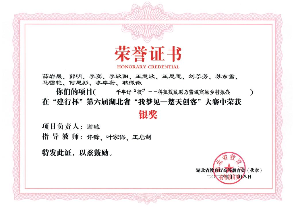 “建行杯”第六届湖北省“我梦见—楚天创客”大赛-银奖---千年好“核”——科技援藏助力雪域高原乡村振...
