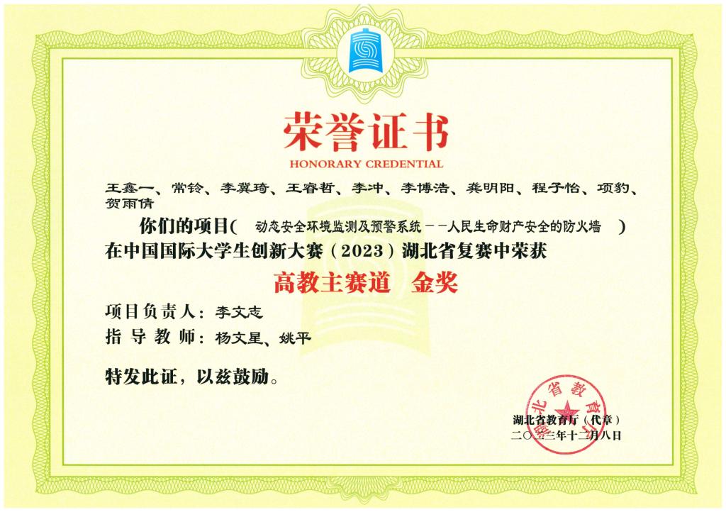 中国国际大学生创新大赛(2023)湖北省复赛-金奖---动态安全环境监测及预警系统——人民生命财产安全的...