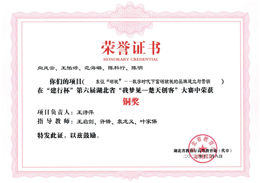 “建行杯”第六届湖北省“我梦见—楚天创客”大赛-铜奖--东征“硒桃”--数字时代下富硒核桃的品牌建立与...