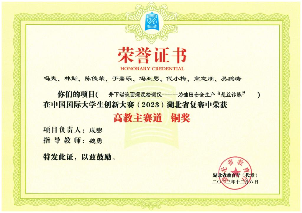 中国国际大学生创新大赛(2023)湖北省复赛-铜奖---井下动液面深度检测仪为油田安全生产“悬丝诊脉”