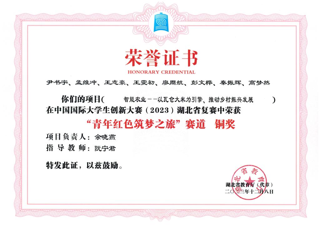 中国国际大学生创新大赛(2023)湖北省复赛-铜奖---智能农业——以瓦仓大米为引擎、推动乡村振兴发展