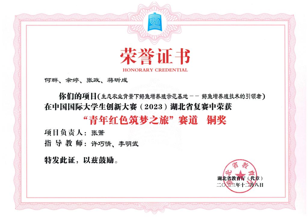 中国国际大学生创新大赛(2023)湖北省复赛-铜奖---生态农业背景下鲟鱼增养殖示范基地——鲟鱼增养殖技...