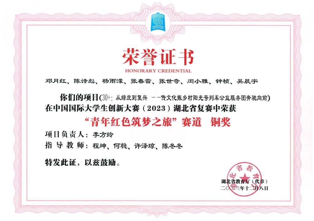 中国国际大学生创新大赛(2023)湖北省复赛-铜奖---30+:从绿皮到复兴一传文化振乡村阳光号列车公益服务...