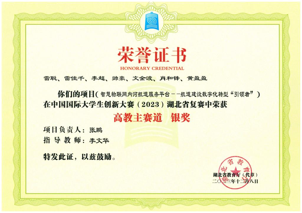 中国国际大学生创新大赛(2023)湖北省复赛-银奖---智慧物联网内河航道服务平台——航道建设数字化转型...