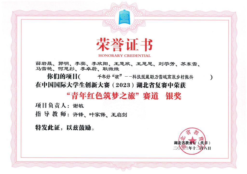 中国国际大学生创新大赛(2023)湖北省复赛-银奖---千年好“核”--科技援藏助力雪域高原乡村振兴
