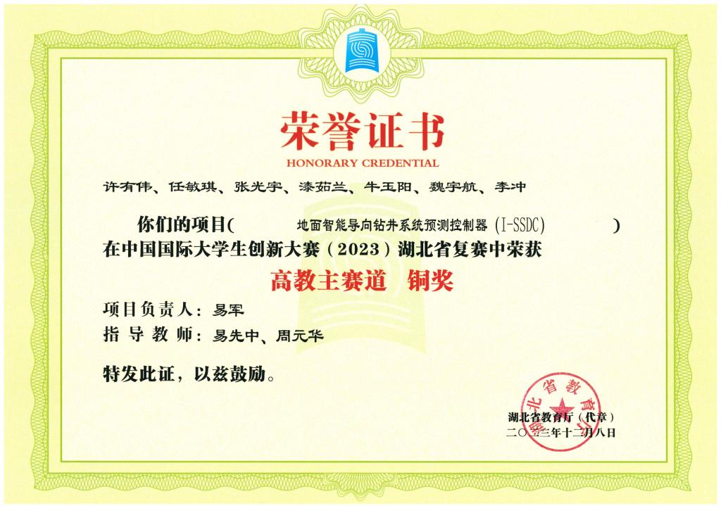 中国国际大学生创新大赛(2023)湖北省复赛-铜奖---地面智能导向钻井系统预测控制器(I-SSDC
