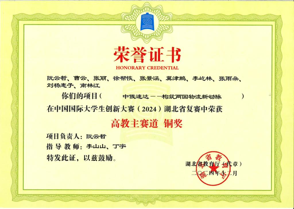 中国国际大学生创新大赛(2023)湖北省复赛-铜奖---中俄速达——构筑两国物流新动脉
