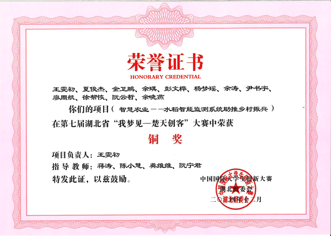 第七届湖北省“我梦见—楚天创客”大赛-铜奖---智慧农业——水稻智能监测系统助推乡村振兴