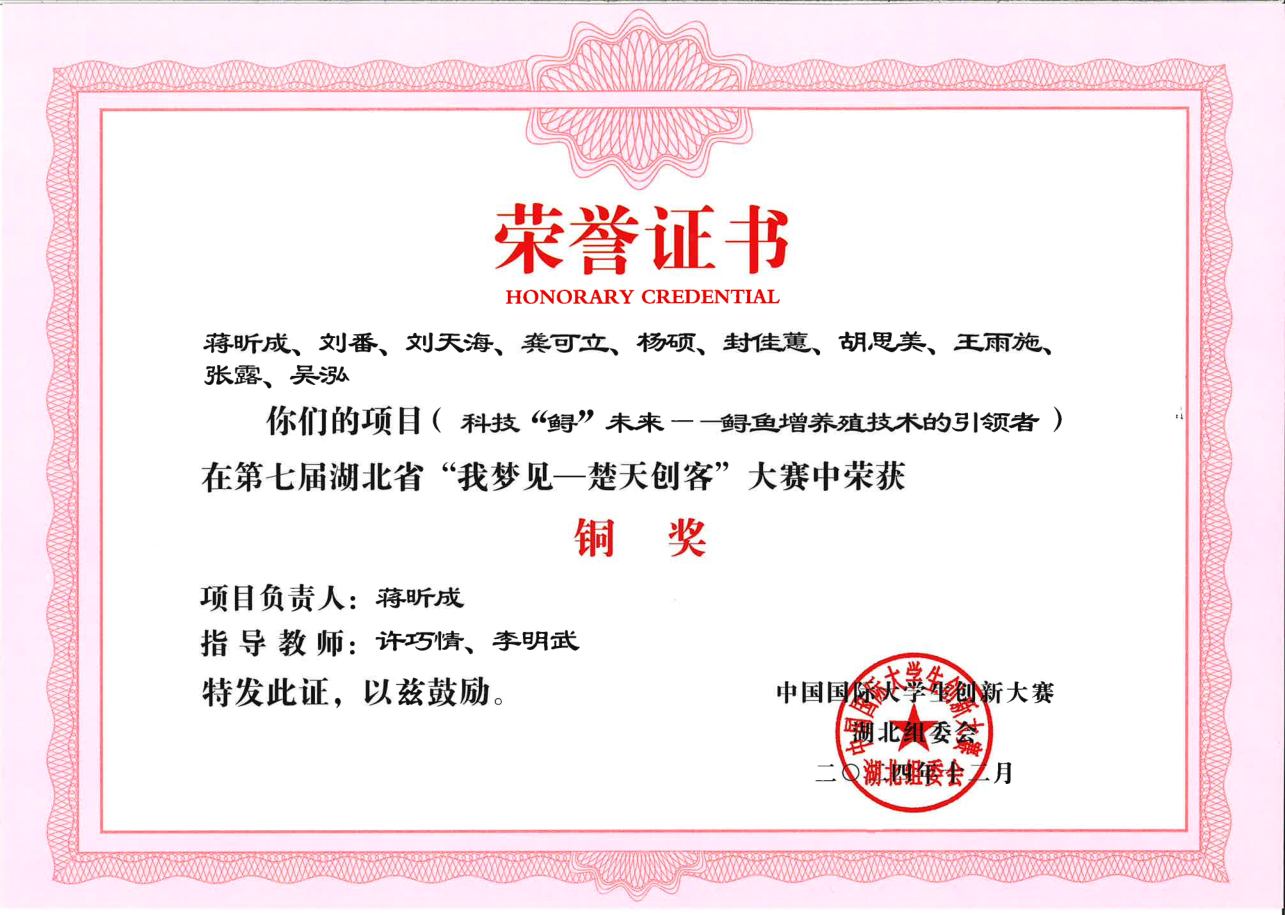 第七届湖北省“我梦见—楚天创客”大赛-铜奖---科技“鲟”未来——鲟鱼增养殖技术的引领者