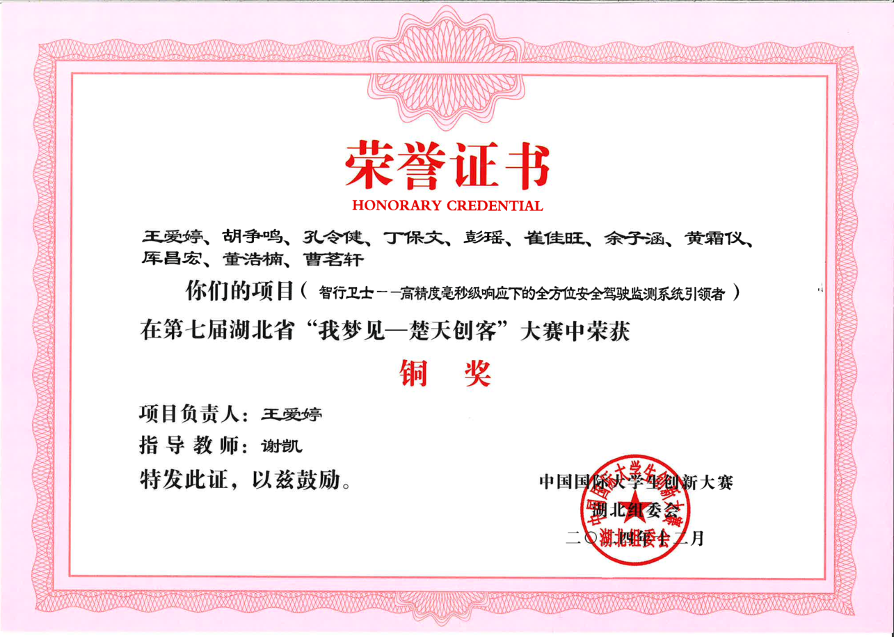 第七届湖北省“我梦见—楚天创客”大赛-铜奖---智行卫士—一高精度毫秒级响应下的全方位安全驾驶监测系...