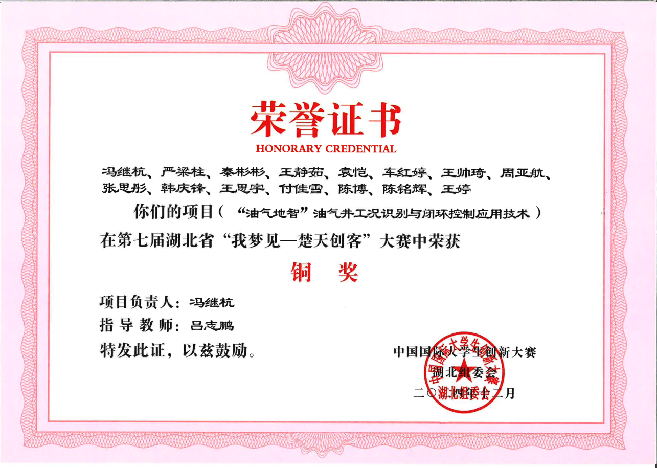 第七届湖北省“我梦见—楚天创客”大赛-铜奖---“油气地智”油气井工况识别与闭环控制应用技术